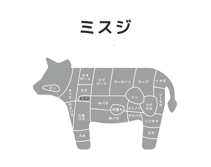 ミスジは適度な脂肪と筋肉が混じり合っており、肉質が柔らかく、うま味と甘みが特徴です。特に能登牛のミスジは、その霜降り具合と肉質の良さから、非常に人気のある部位とされています。